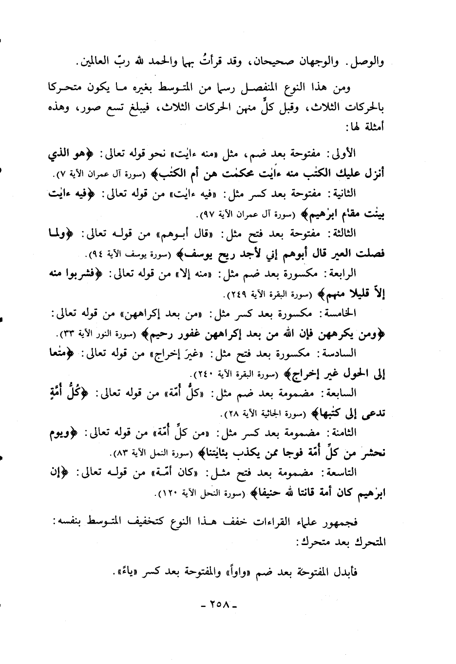 ومن هذا النوع المنفصل رسما من المتوسط بغيره ما يكون متحركا بالحركات الثلاث، وقبل كلّ منهن الحركات الثلاث، فيبلغ تسع صور، وهذه أمثلة لها: