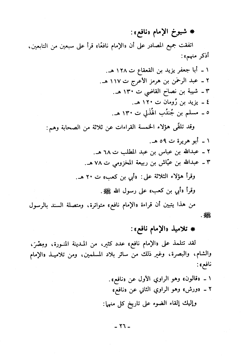 من هذا يتبين أن قراءة «الإمام نافع» متواترة، ومتصلة السند بالرسول صلّى الله عليه وسلّم.