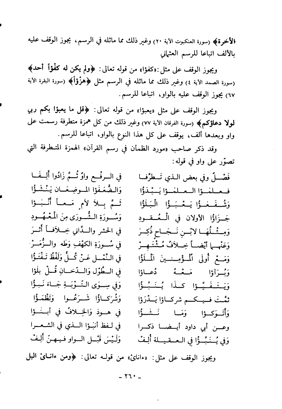 وقد ذكر صاحب «مورد الظمآن في رسم القرآن» الهمزة المتطرفة التي تصوّر على واو في قوله: