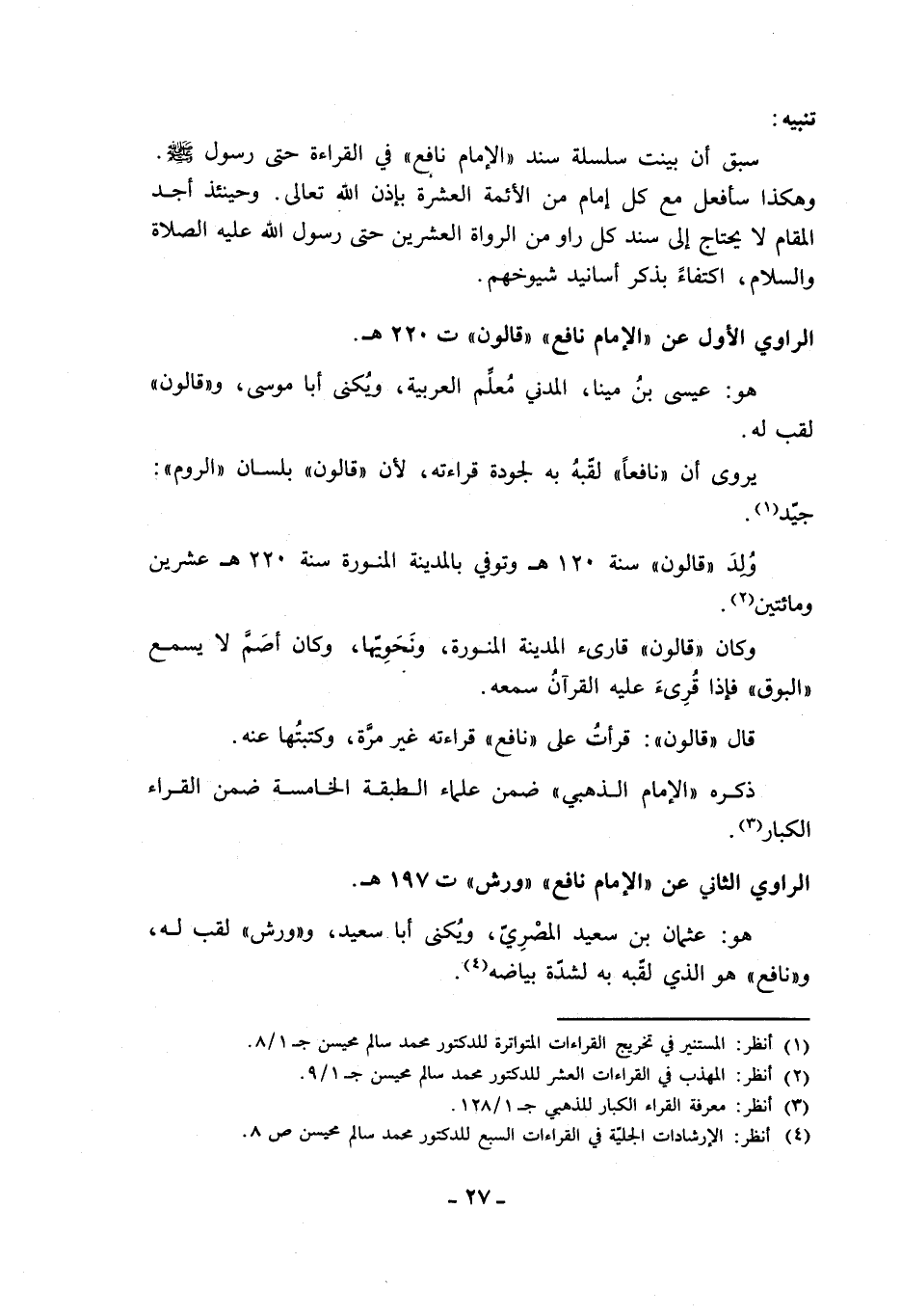 (3) أنظر: معرفة القراء الكبار للذهبي ج 1/ 128.