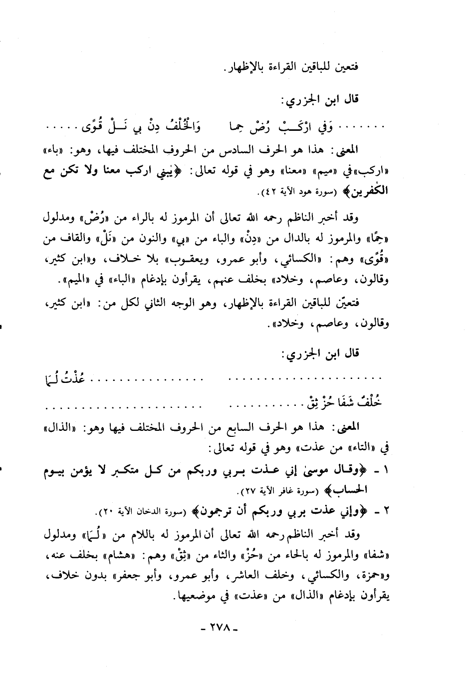 المعنى: هذا هو الحرف السابع من الحروف المختلف فيها وهو: «الذال» في «التاء» من عذت» وهو في قوله تعالى: