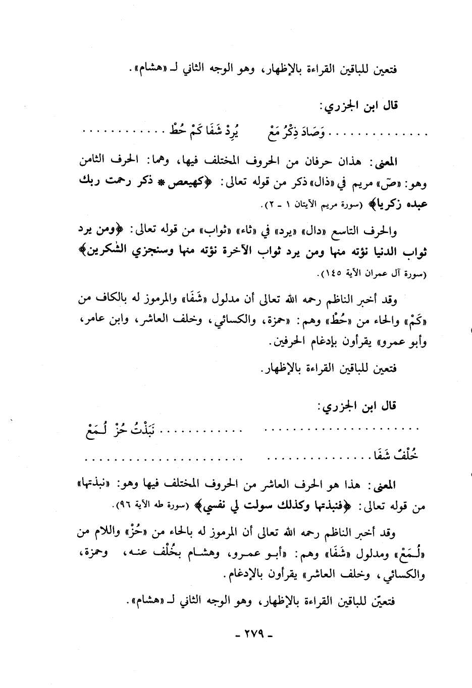 المعنى: هذان حرفان من الحروف المختلف فيها، وهما: الحرف الثامن وهو: «ص» مريم في «ذال» ذكر من قوله تعالى: كهيعص* ذِكْرُ رَحْمَتِ رَبِّكَ عَبْدَهُ زَكَرِيَّا (سورة مريم الآيتان 1 - 2).