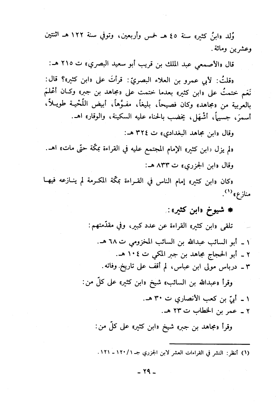 ولد «ابن كثير» سنة 45 هـ خمس وأربعين، وتوفي سنة 122 هـ اثنتين وعشرين ومائة.