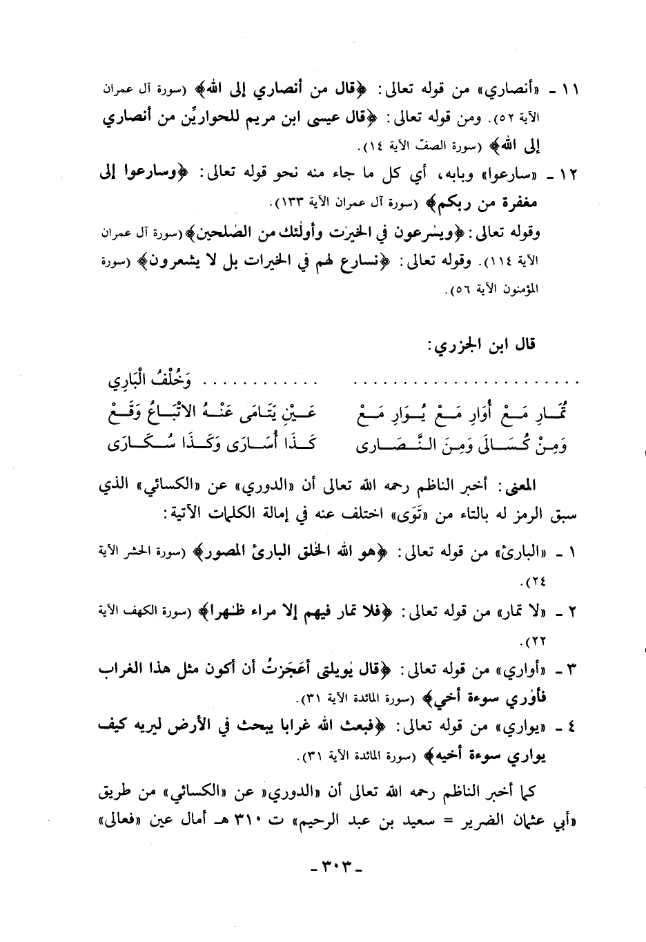 12 - «سارعوا» وبابه، أي كل ما جاء منه نحو قوله تعالى: وَسارِعُوا إِلى مَغْفِرَةٍ مِنْ رَبِّكُمْ (سورة آل عمران الآية 133).