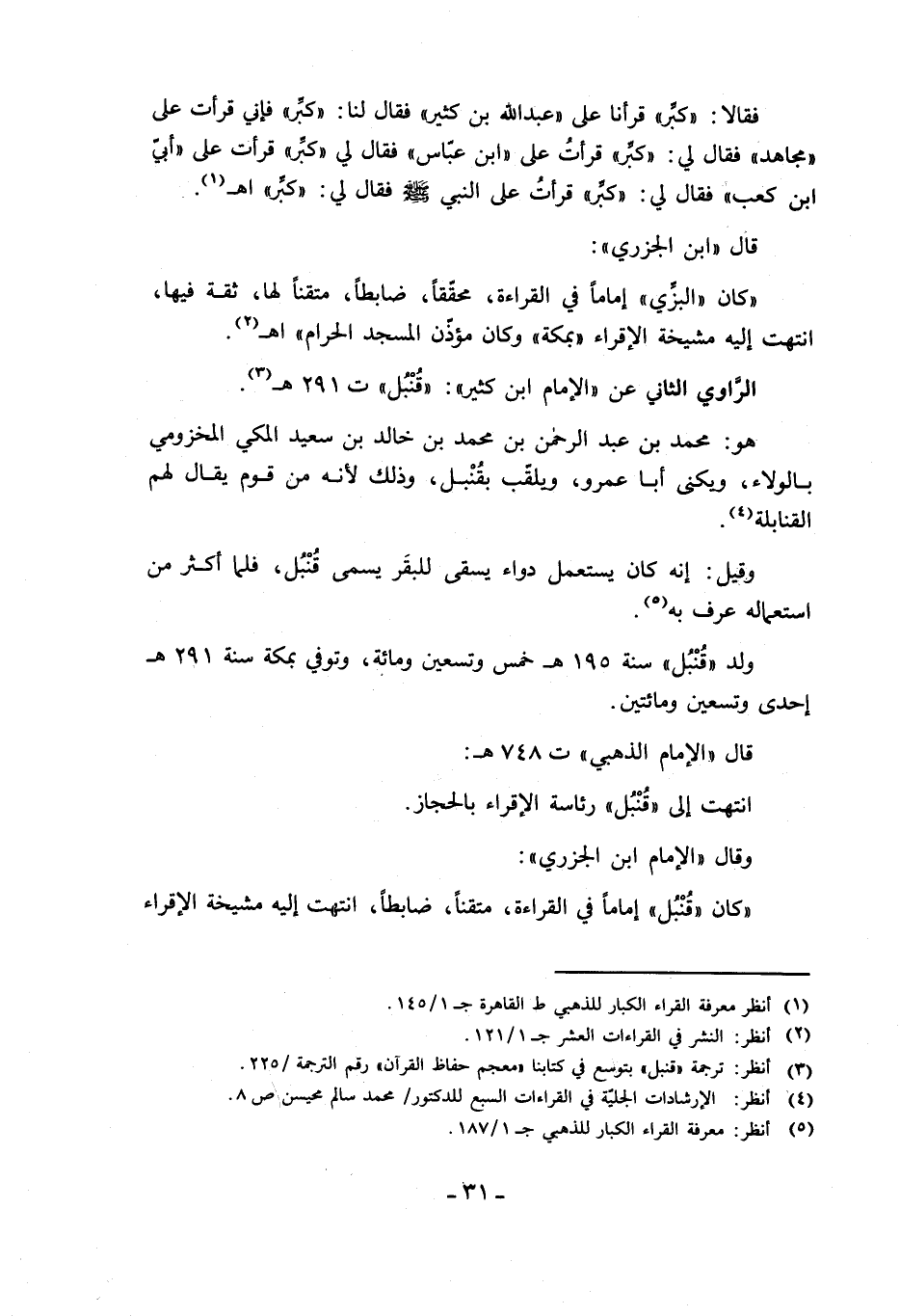 «كان «قنبل» إماما في القراءة، متقنا، ضابطا، انتهت إليه مشيخة الإقراء