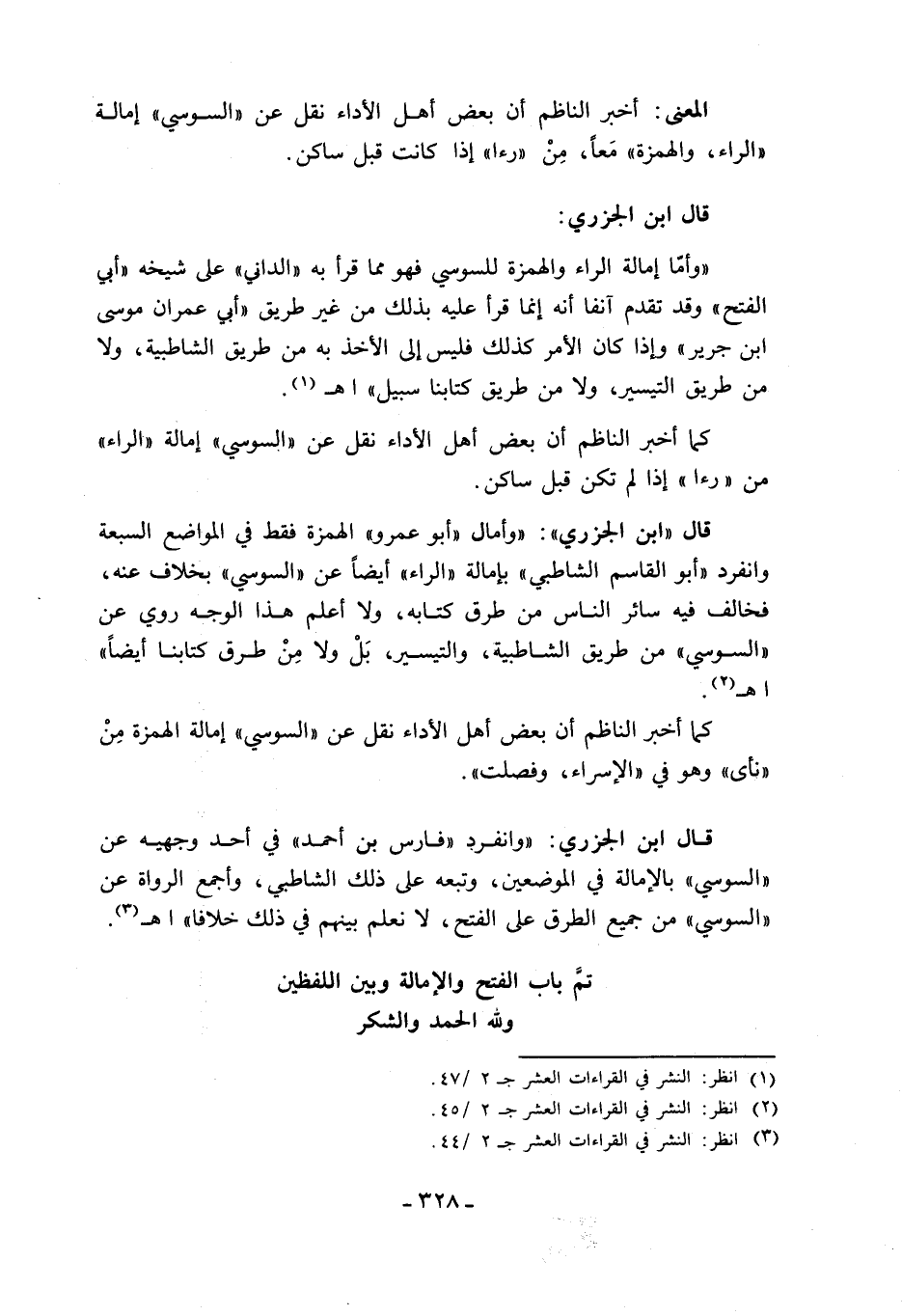 تمّ باب الفتح والإمالة وبين اللفظين ولله الحمد والشكر