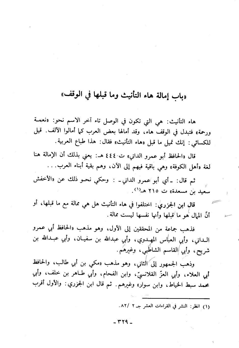 فذهب جماعة من المحققين إلى الأول، وهو مذهب «الحافظ أبي عمرو الداني، وأبي العباس المهدوي، وأبي عبد الله بن سفيان، وأبي عبد الله بن شريح، وأبي القاسم الشاطبي، وغيرهم.
