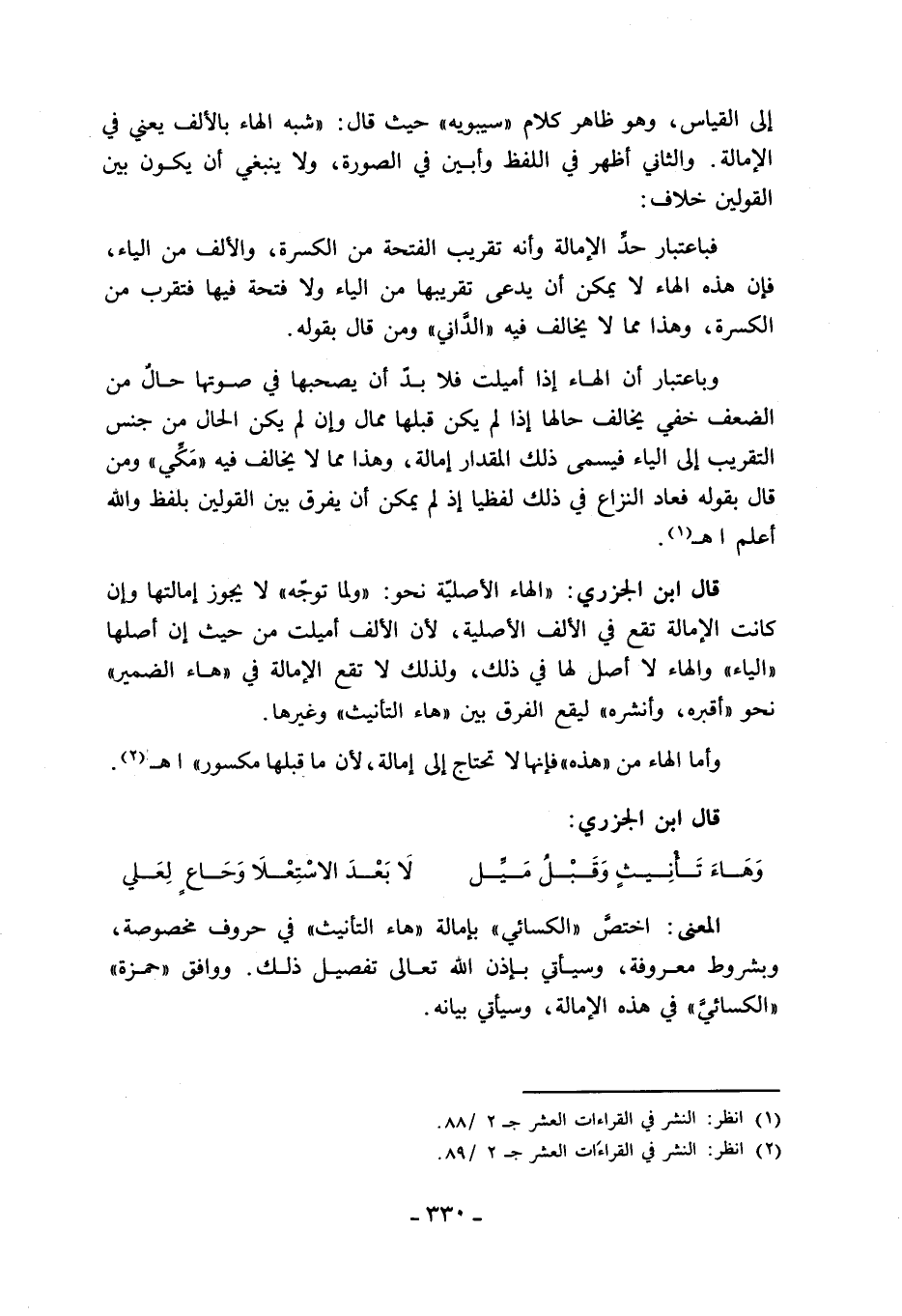 فباعتبار حدّ الإمالة وأنه تقريب الفتحة من الكسرة، والألف من الياء، فإن هذه الهاء لا يمكن أن يدعى تقريبها من الياء ولا فتحة فيها فتقرب من الكسرة، وهذا مما لا يخالف فيه «الدّاني» ومن قال بقوله.