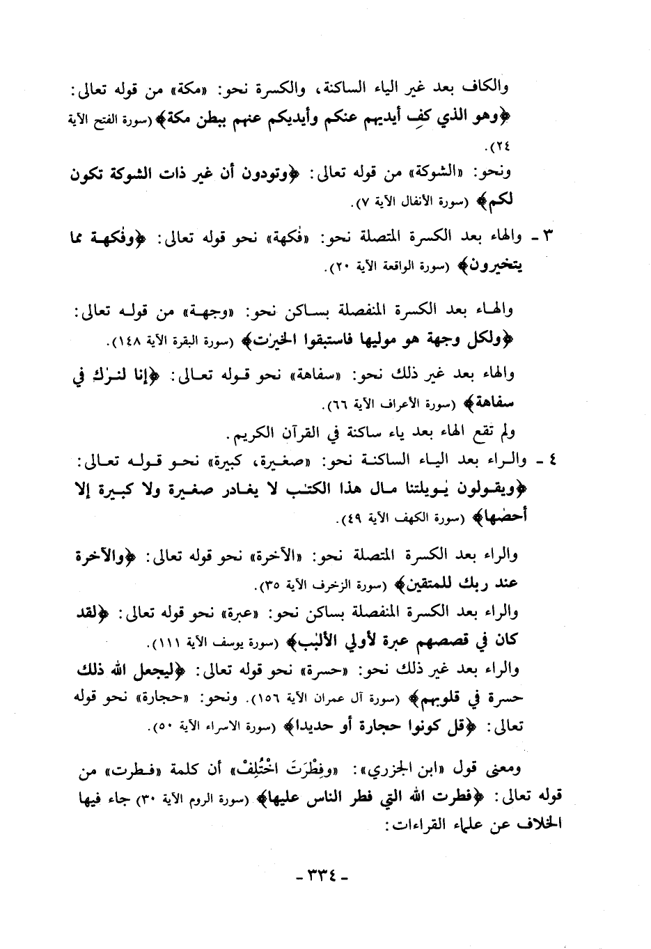 3 - والهاء بعد الكسرة المتصلة نحو: «فكهة» نحو قوله تعالى: وَفاكِهَةٍ مِمَّا يَتَخَيَّرُونَ (سورة الواقعة الآية 20).