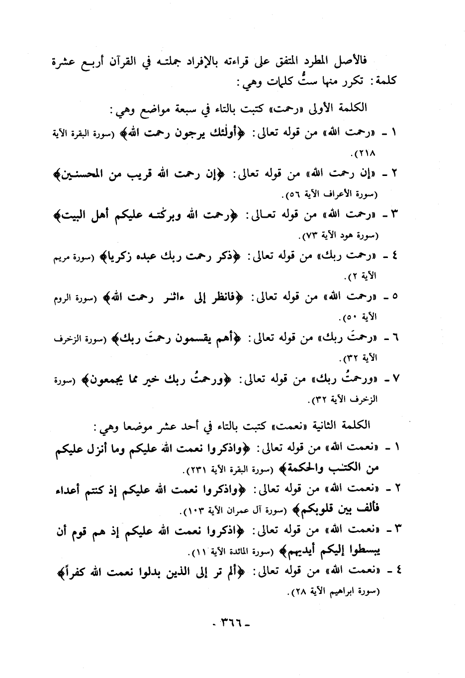 الكلمة الثانية «نعمت» كتبت بالتاء في أحد عشر موضعا وهي: