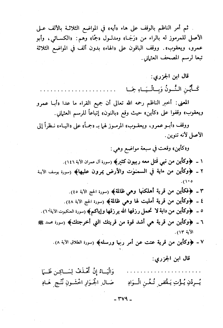 المعنى: أخبر الناظم رحمه الله تعالى أن جميع القراء ما عدا «أبا عمرو ويعقوب» وقفوا على «كأين» حيث وقع «بالنون» اتباعا للرسم العثماني.