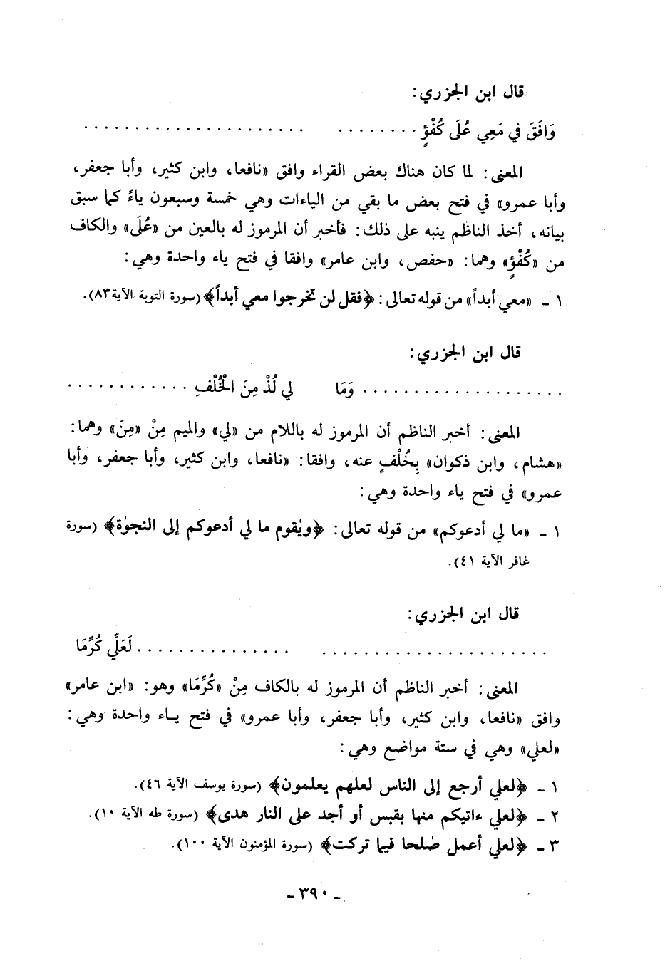 المعنى: لما كان هناك بعض القراء وافق «نافعا، وابن كثير، وأبا جعفر، وأبا عمرو» في فتح بعض ما بقي من الياءات وهي خمسة وسبعون ياء كما سبق بيانه، أخذ الناظم ينبه على ذلك: فأخبر أن المرموز له بالعين من «على» والكاف من «كفؤ» وهما: «حفص، وابن عامر» وافقا في فتح ياء واحدة وهي: