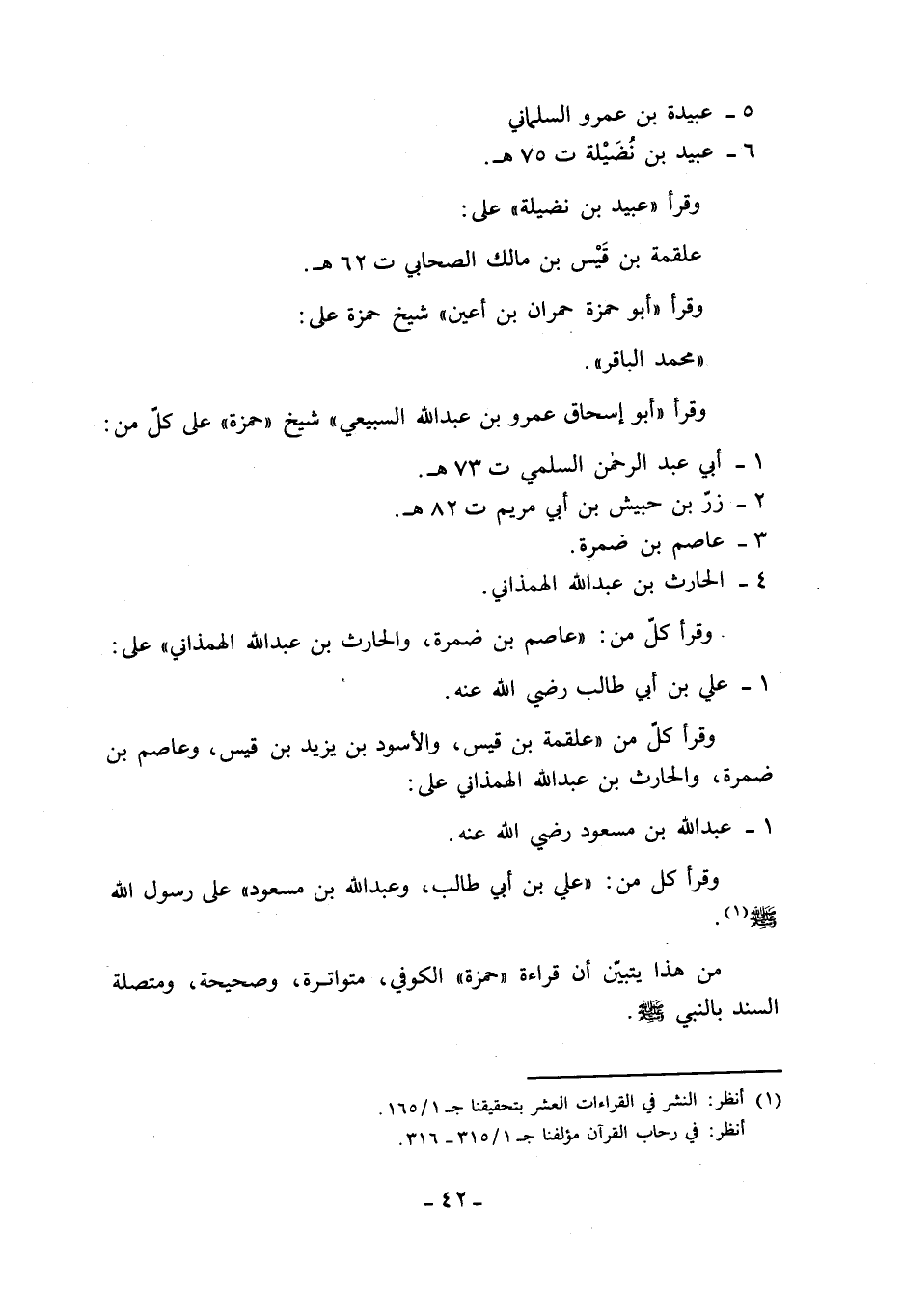 وقرأ «أبو إسحاق عمرو بن عبد الله السبيعي» شيخ «حمزة» على كلّ من: