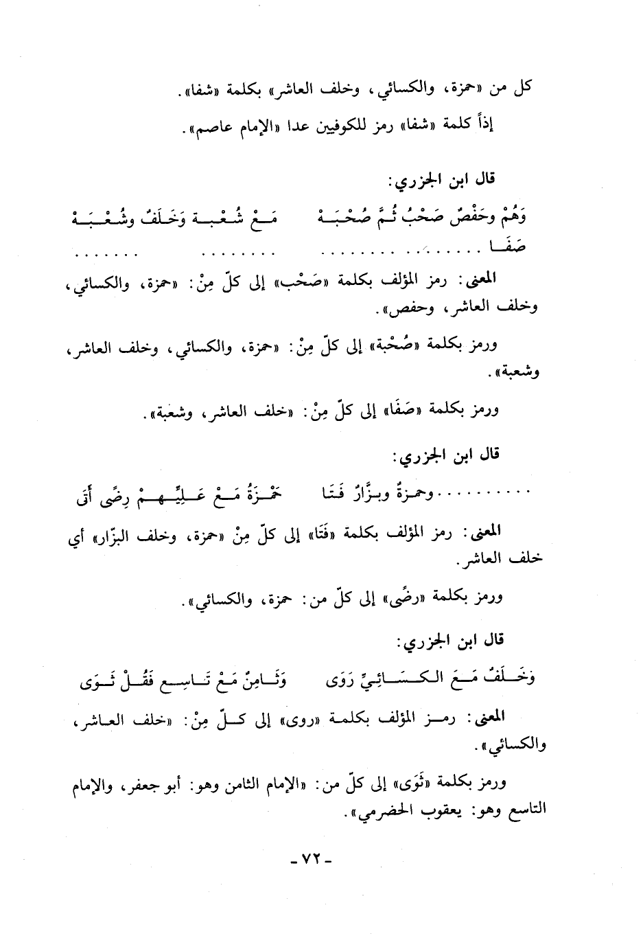 ورمز بكلمة «رضى» إلى كلّ من: حمزة، والكسائي».