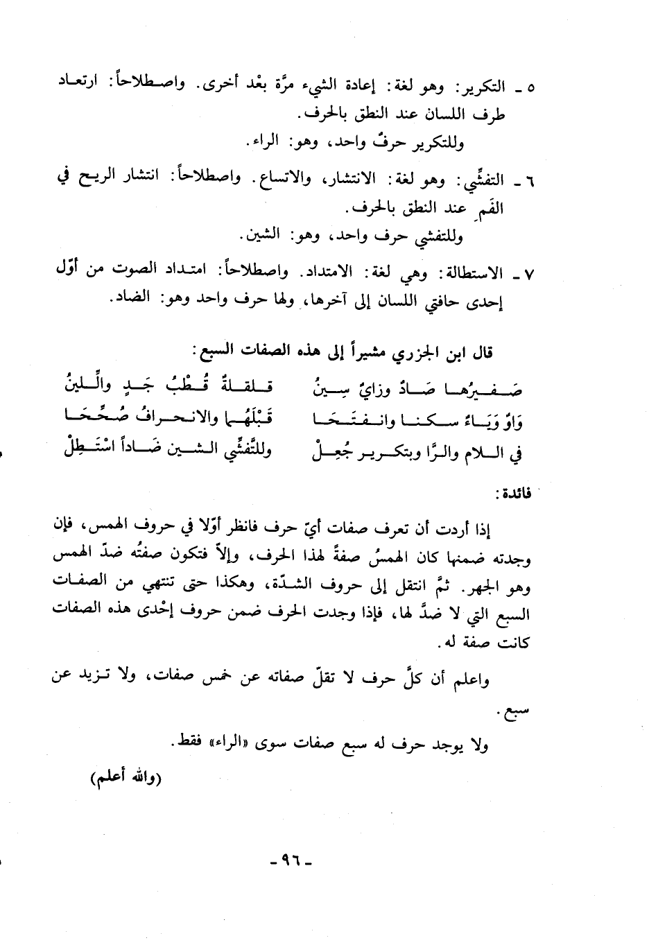 صفيرها صاد وزاي سين ... قلقلة قطب جد واللّين