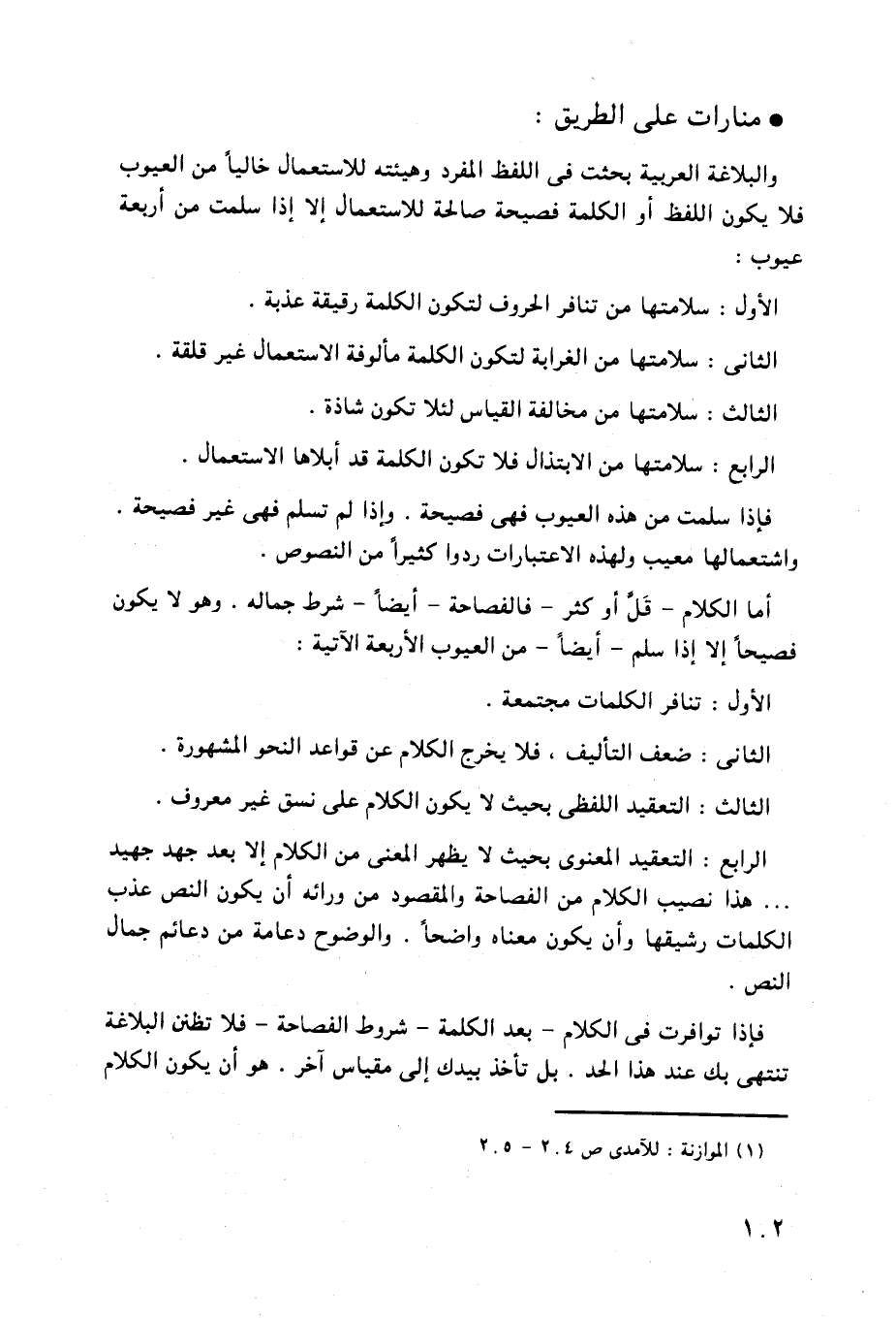 . . . هذا نصيب الكلام من الفصاحة والمقصود من ورائه أن يكون النص عذب الكلمات رشيقها وأن يكون معناه واضحاً.
