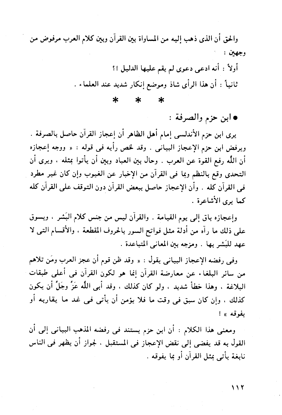 ويرفض ابن حزم الإعجاز البياني.