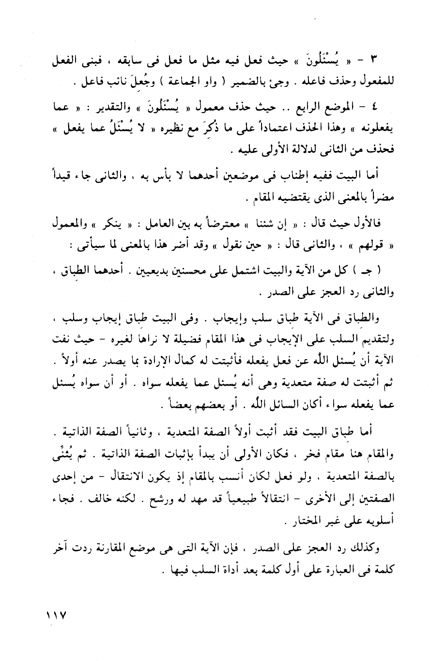 ثم يُثنى بالصفة المتعدية، ولو فعل لكان أنسب بالمقام إذ يكون الانتقال - من إحدى الصفتين إلى الأخرى - انتقالاً طبيعياً قد مهد له ورشح.