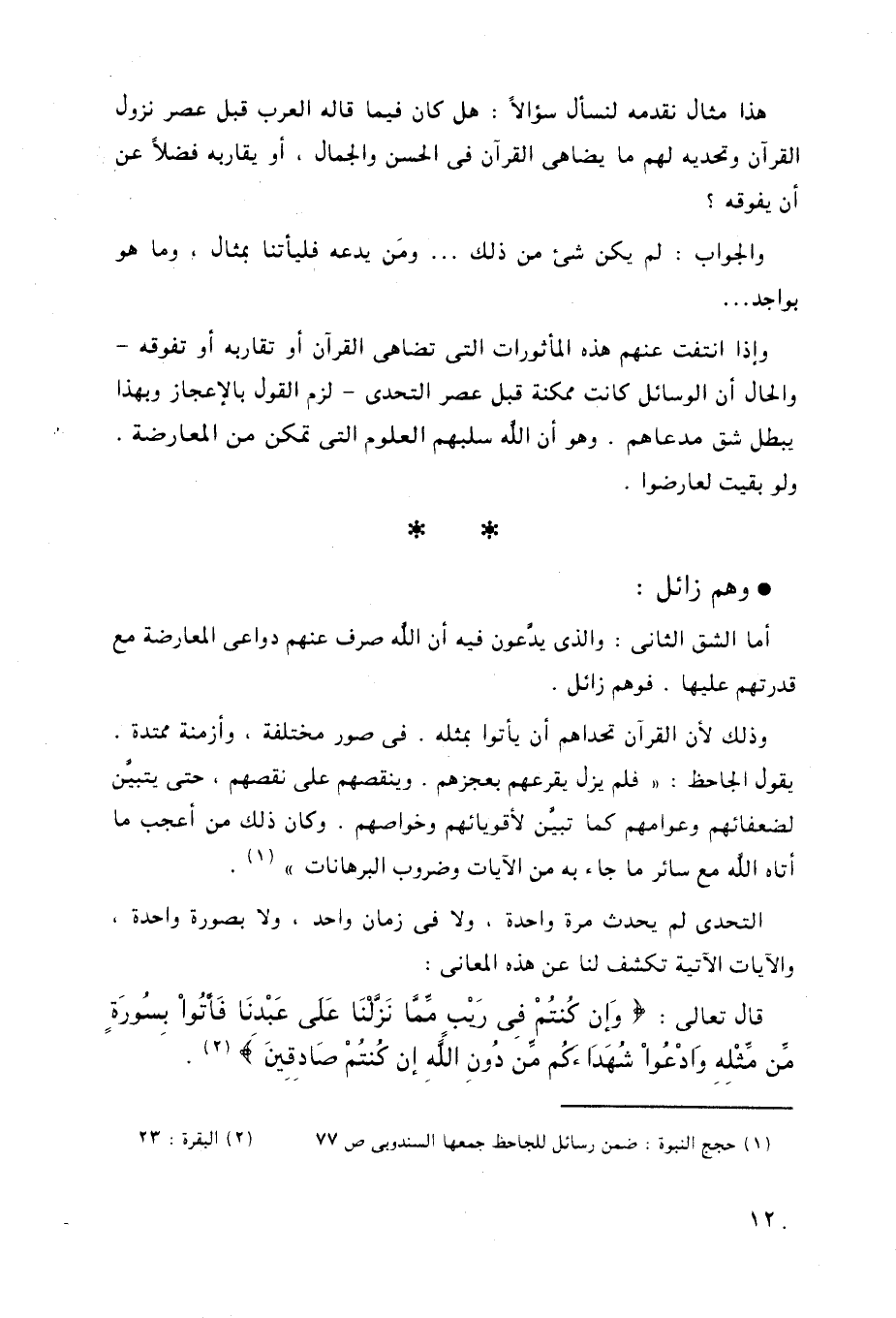 وإذا انتفت عنهم هذه المأثورات التي تضاهى القرآن أو تقاربه أو تفوقه -