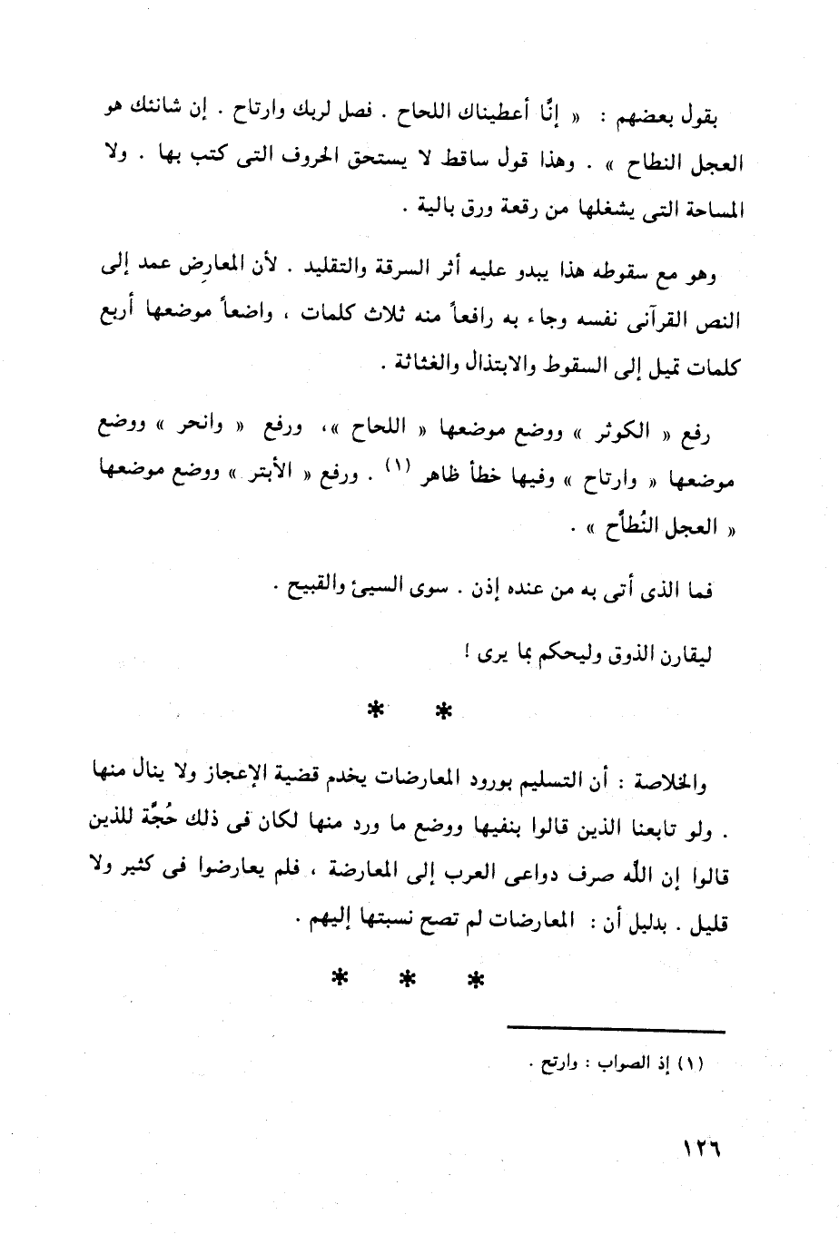 رفع " الكوثر " ووضع موضعها " اللحاح "، ورفع " وانحر " ووضع