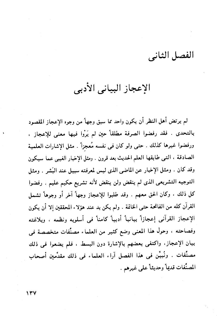 الإعجاز القرآني إعجازاً بيانياً أدبياً كامناً في أسلوبه ونظمه، وبلاغته