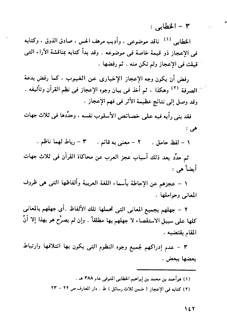 فى الإعجاز ذو قيمة خاصة في موضوعه. وقد بدأ كتابه بمناقشة الآراء التى