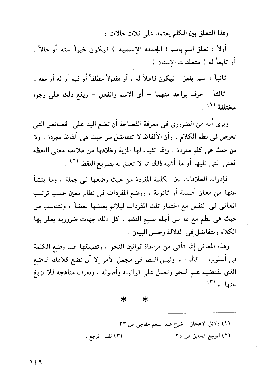 وهذا التعلق بين الكلم يعتمد على ثلاث حالات: