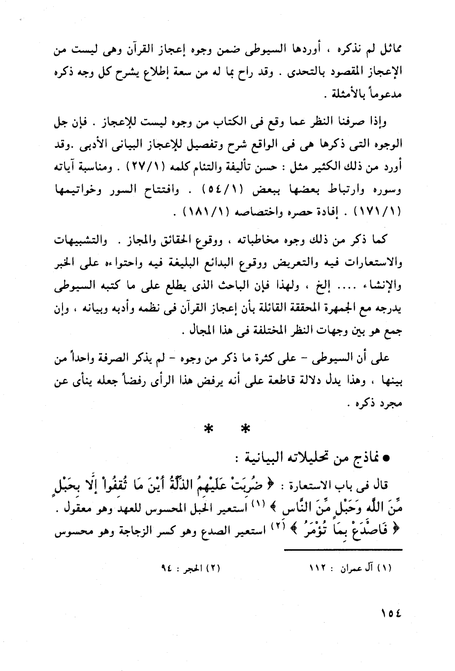 على أن السيوطي - على كثرة ما ذكر من وجوه - لم يذكر الصرفة واحداً من بينها، وهذا يدل دلالة قاطعة على أنه يرفض هذا الرأي رفضاً جعله ينأى عن مجرد ذكره.