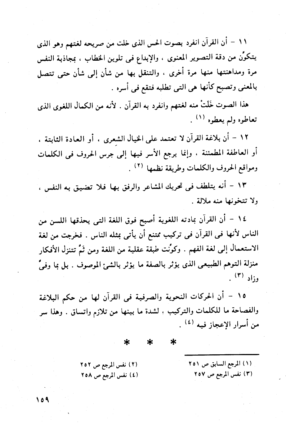 11 - أن القرآن انفرد بصوت الحس الذي خلت من صريحه لغتهم وهو الذى يتكون من دقة التصوير المعنوي، والإبداع في تلوين الخطاب، بمجاذبة النفس مرة ومداهنتها منها مرة أخرى، والتنقل بها من شأن إلى شأن حتى تتصل بالمعنى وتصبح كأنها هي التي تطلبه فتقع في أسره.