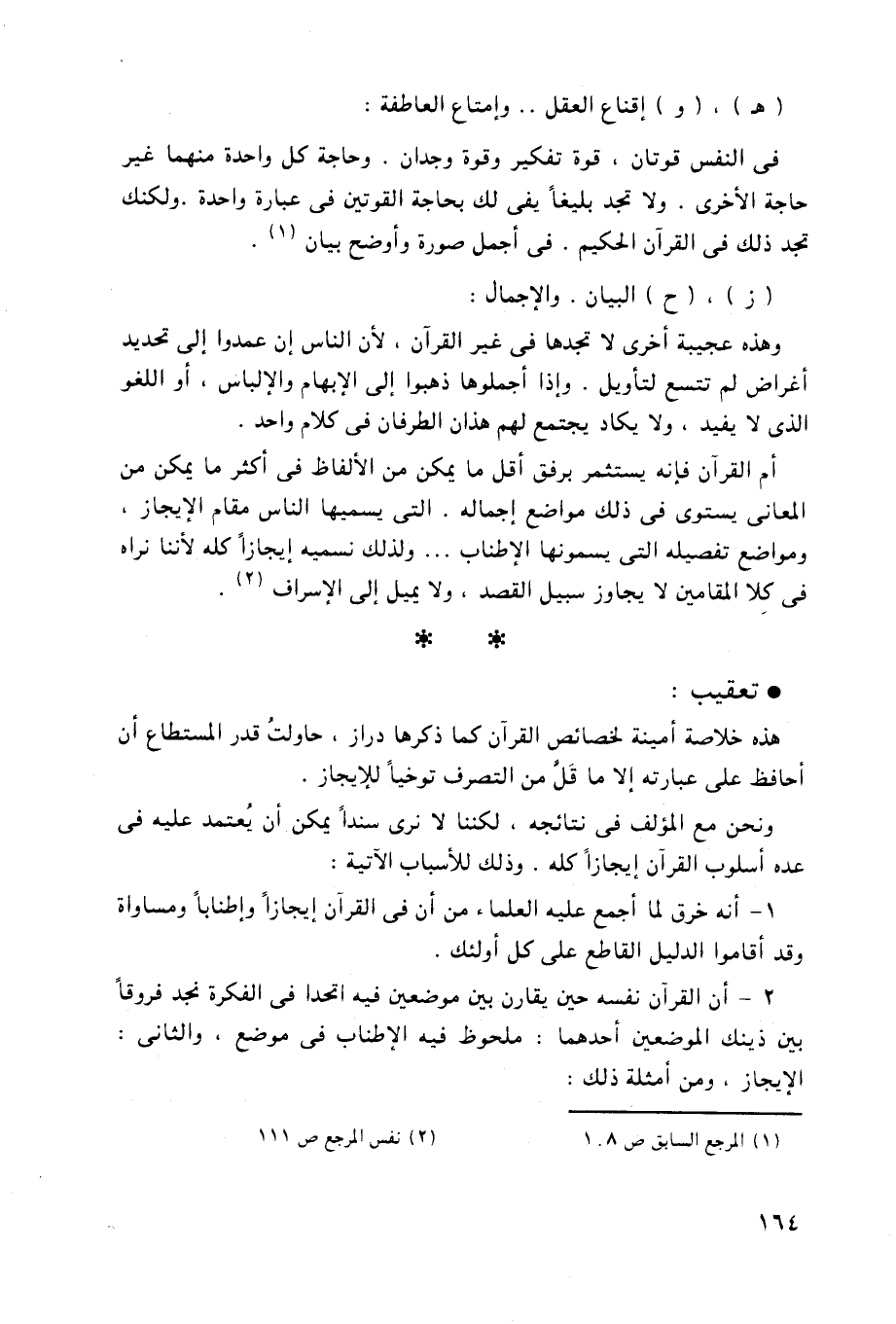 ومواضع تفصيله التي يسمونها الإطناب. . . ولذلك نسميه إيجازاً كله لأننا نراه فى كِلا المقامين لا يجاوز سبيل القصد، ولا يميل إلى الإسراف.