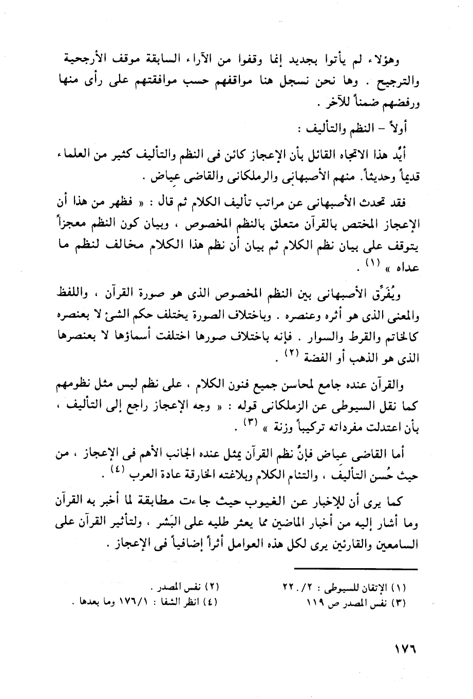 أما القاضي عياض فإن نظم القرآن يمثل عنده الجانب الأهم في الإعجاز، من