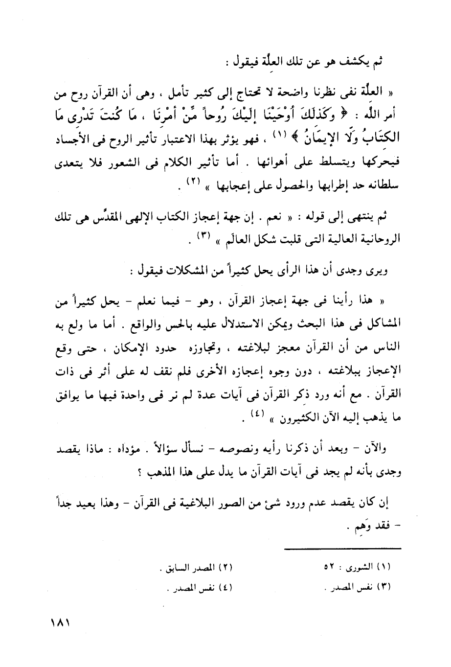 ثم ينتهى إلى قوله: " نعم. إن جهة إعجاز الكتاب الإلهى المقدس هي تلك