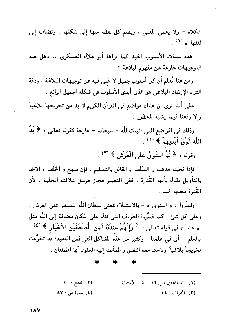 ومن هنا يُعلم أن كل أسلوب جميل لا غِنى فيه عن توجيهات البلاغة، ودقة