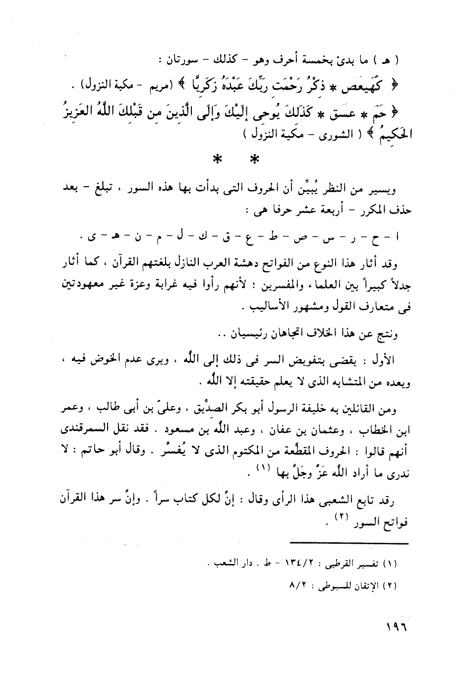 وقد تابع الشعبى هذا الرأي وقال: إن لكل كتاب سراً. وإن سر هذا القرآن