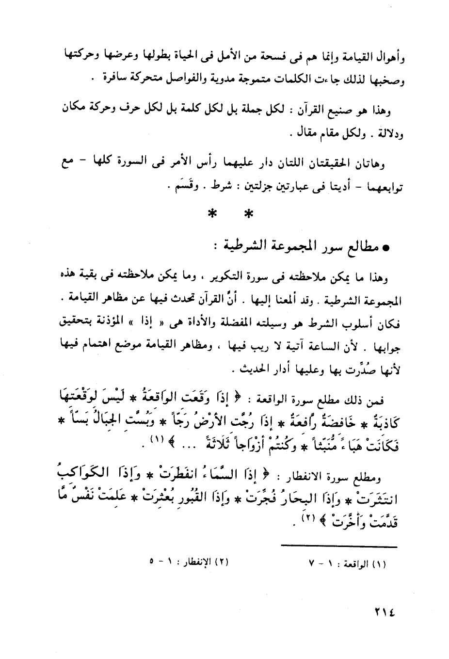 المجموعة الشرطية. وقد ألمحنا إليها. أن القرآن تحدث فيها عن مظاهر القيامة.