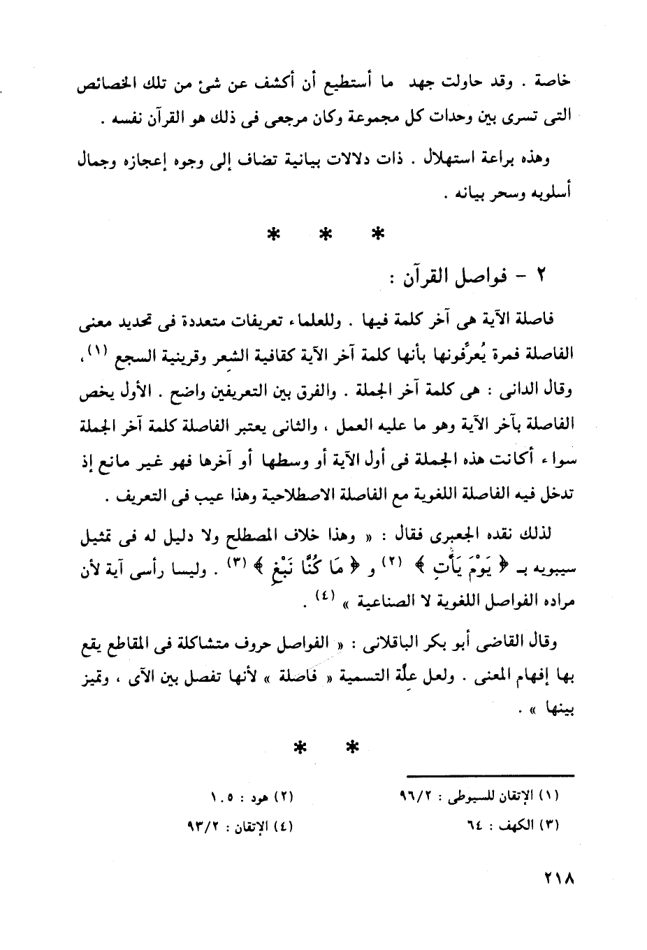الفاصلة فمرة يُعرفونها بأنها كلمة آخر الآية كقافية الشعر وقرينية السجع،