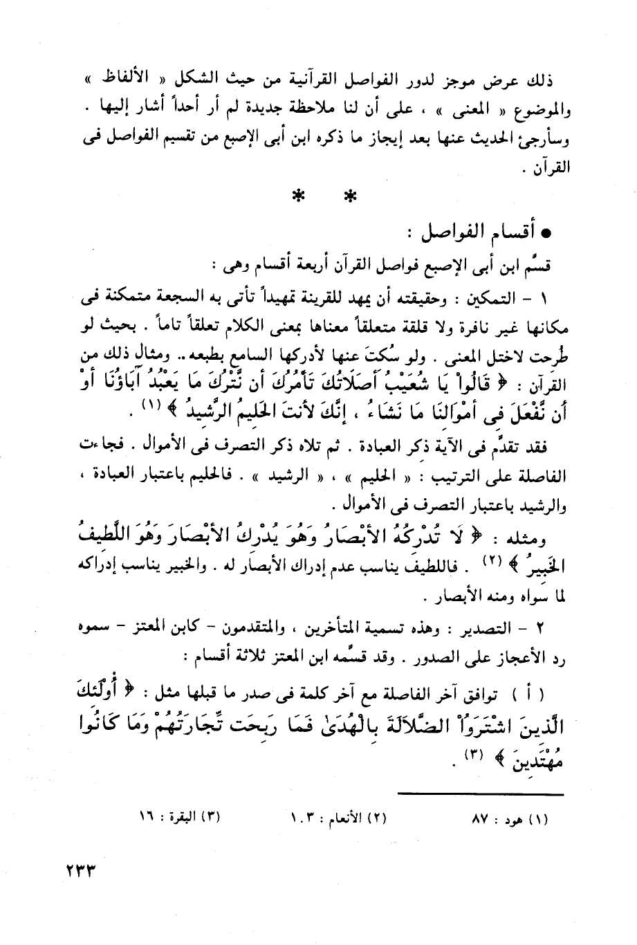 وسأرجئ الحديث عنها بعد إيجاز ما ذكره ابن أبى الإصبع من تقسيم الفواصل فى القرآن.