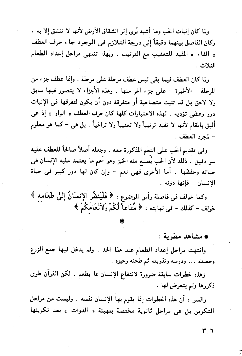وهذه خطوات سابقة ضرورة لانتفاع الإنسان بما يطعم. لكن القرآن طوى