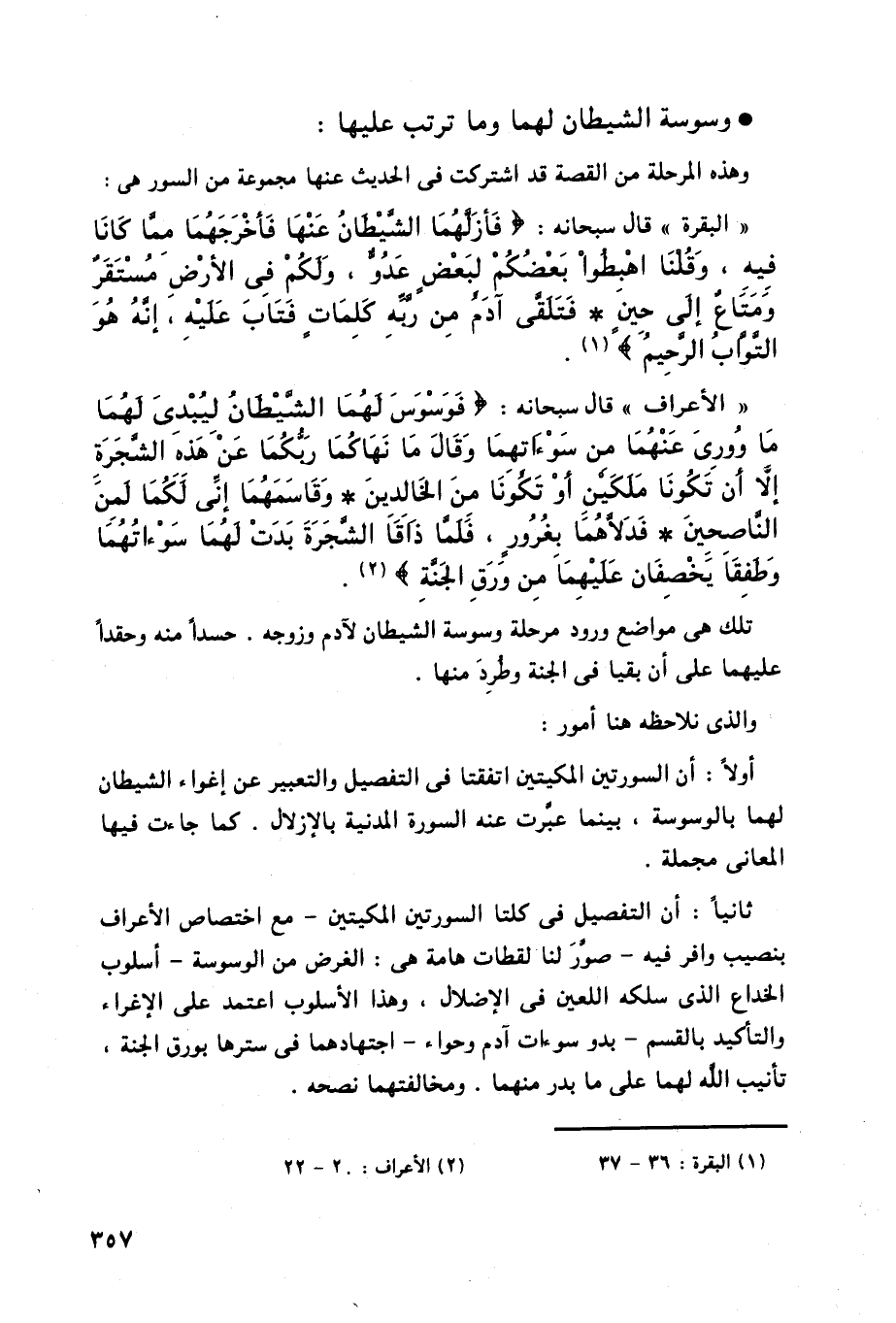 أولاً: أن السورتين المكيتين اتفقتا في التفصيل والتعبير عن إغواء الشيطان