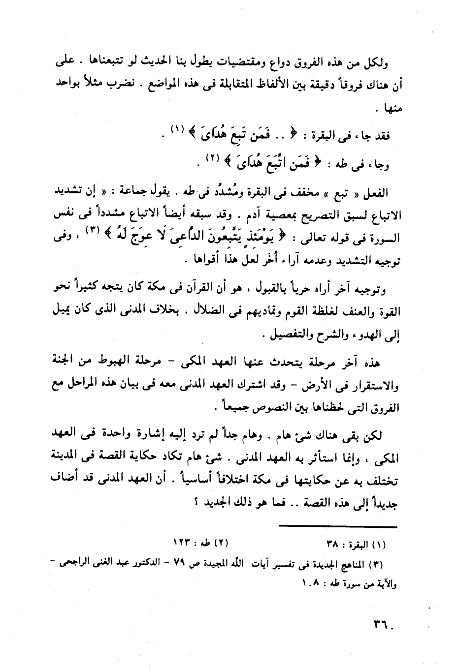 الفعل " تبع " مخفف في البقرة ومُشدد في طه.