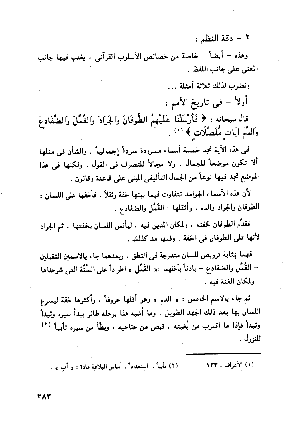 والشأن في مثلها ألا تكون موضعاً للجمال. ولا مجالاً للتصرف في القول. ولكنها في هذا الوضع تجد فيها نوعاً من الجمال التأليفى المبنى على قاعدة وقانون.