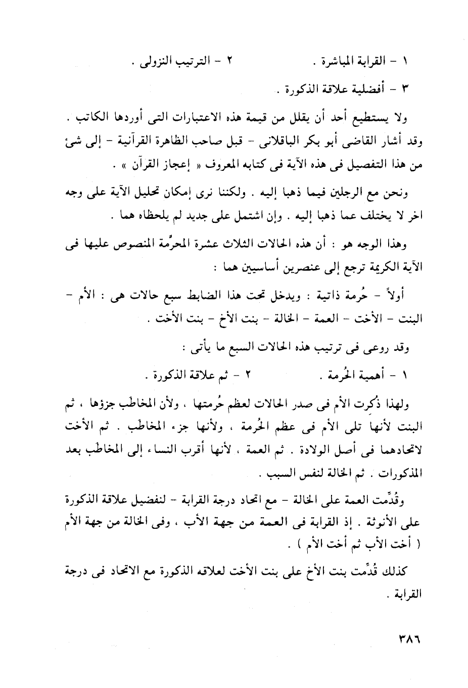 وهذا الوجه هو: أن هذه الحالات الثلاث عشرة المحرَّمة المنصوص عليها في