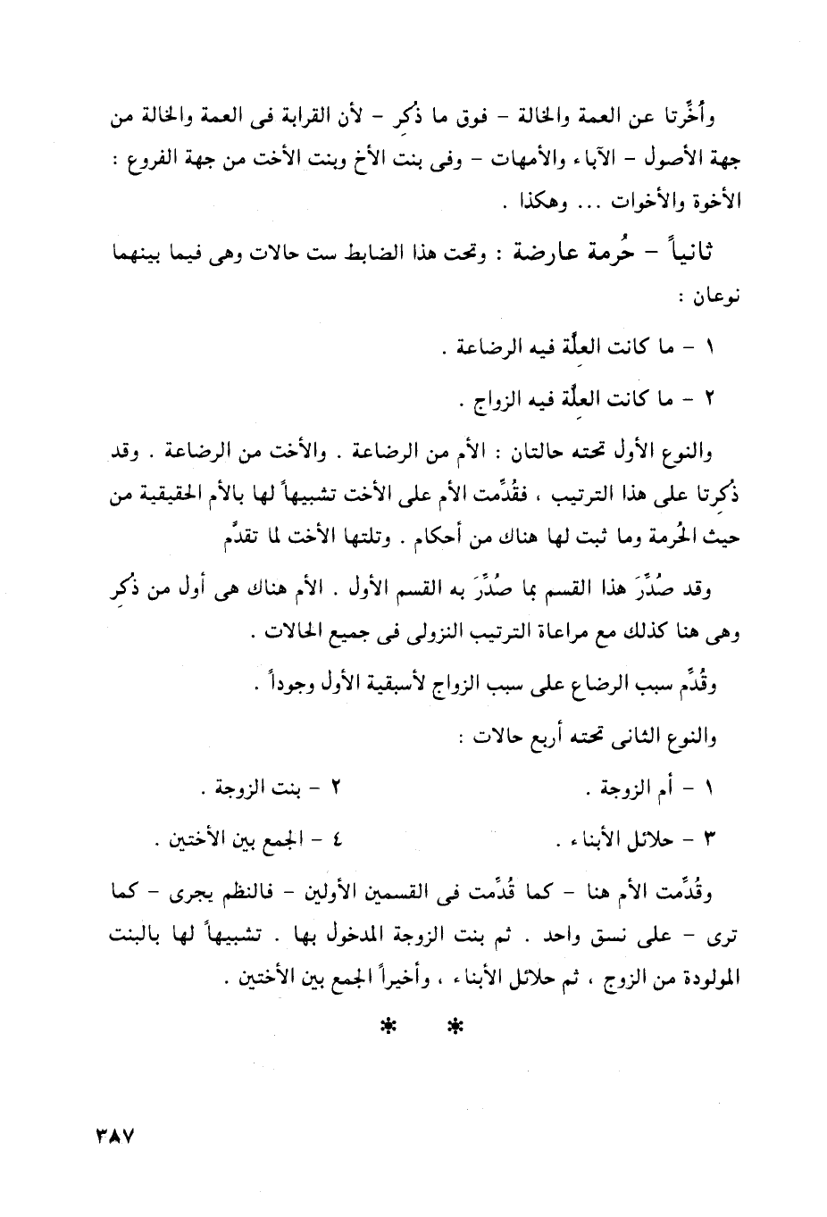ثانياً - حُرمة عارضة: وتحت هذا الضابط ست حالات وهي فيما بينهما