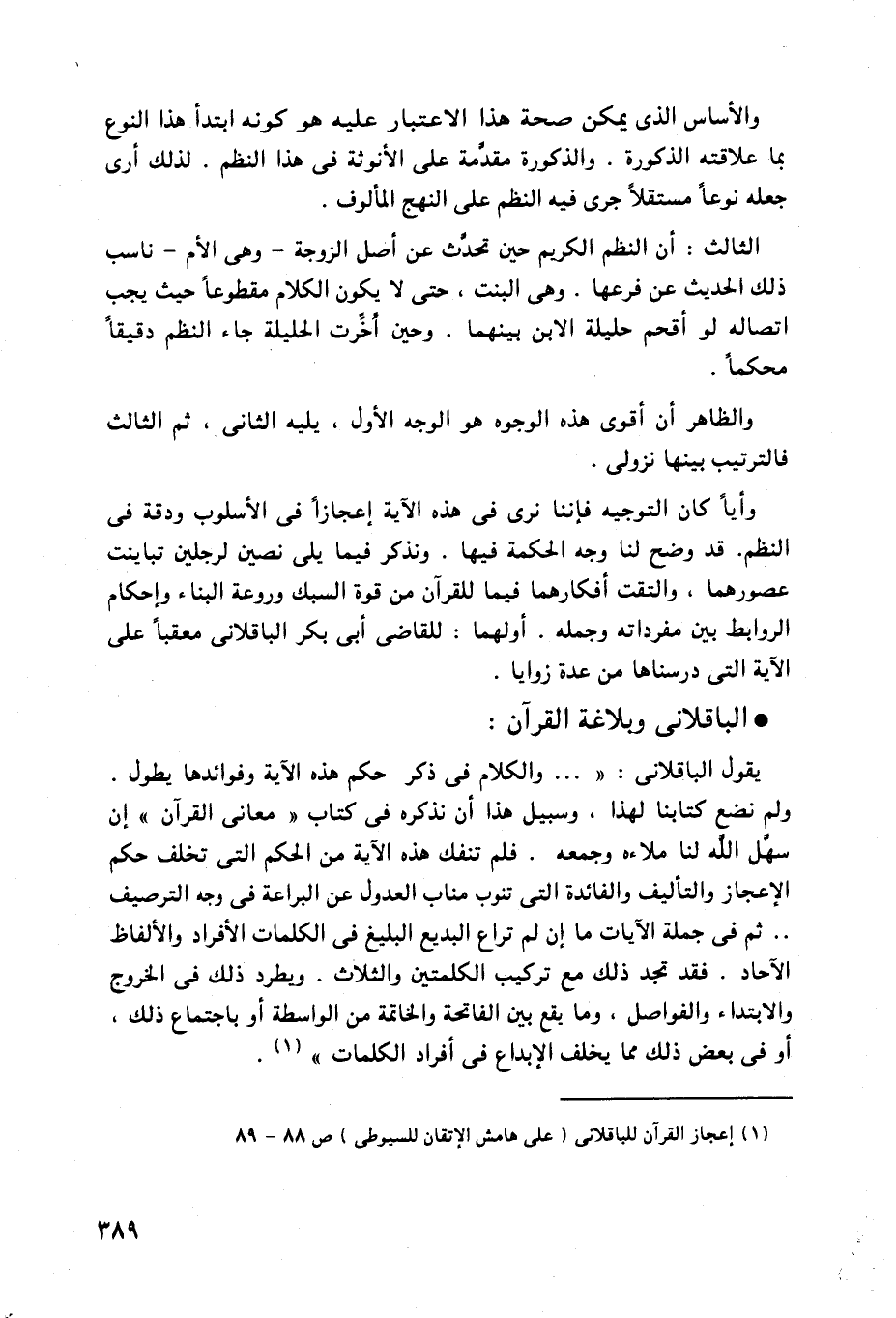 الروابط بين مفرداته وجمله. أولهما: للقاضي أبى بكر الباقلاني معقباً على
