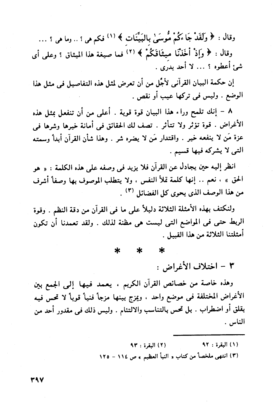 ولنكتف بهذه الأمثلة الثلاثة دليلاً على ما في القرآن من دقة النظم.