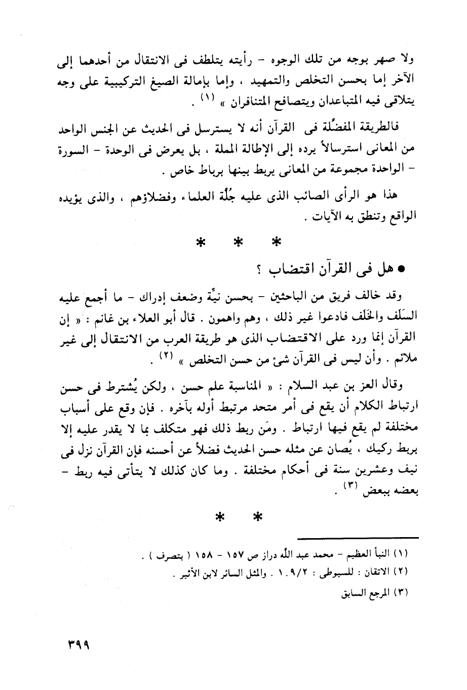 " إن القرآن إنما ورد على الاقتضاب الذي هو طريقة العرب