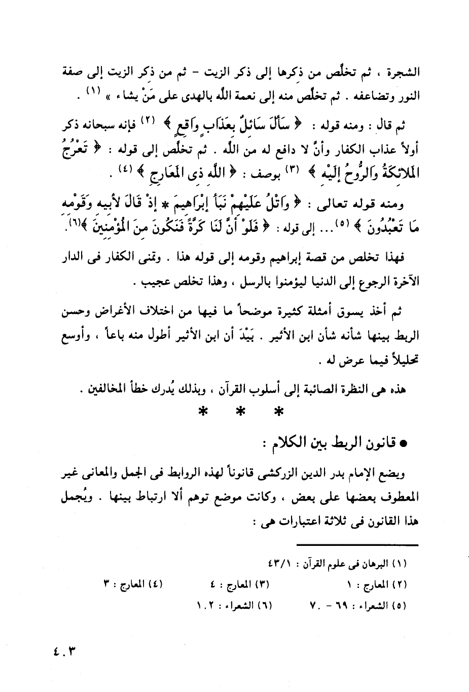 ويضع الإمام بدر الدين الزركشي قانوناً لهذه الروابط في الجمل والمعاني غير