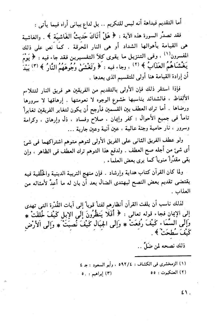 إلى الإيمان فجاء قوله تعالى: (أَفَلَا يَنْظُرُونَ إِلَى الْإِبِلِ كَيْفَ خُلِقَتْ (17) وَإِلَى السَّمَاءِ كَيْفَ رُفِعَتْ (18) وَإِلَى الْجِبَالِ كَيْفَ نُصِبَتْ (19) وَإِلَى الْأَرْضِ كَيْفَ سُطِحَتْ (20) .