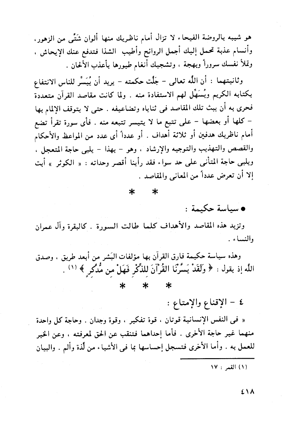 وهذه سياسة حكيمة فارق القرآن بها مؤلفات البَشر من أبعد طريق، وصدق