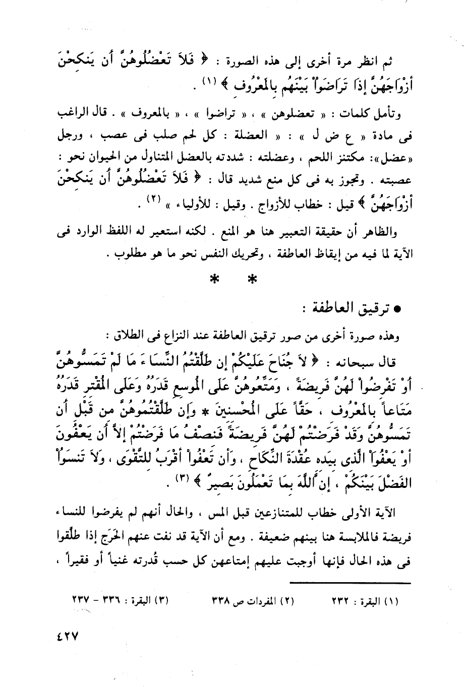 وتأمل كلمات: " تعضلوهن "، " تراضوا "، " بالمعروف ".